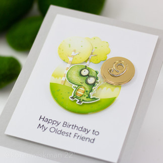 For this card I inlaid the number nine into the reptiles balloon to make the sentiment more personal and a little more fun. I think it's funny that Dexter's oldest friend is only nine.